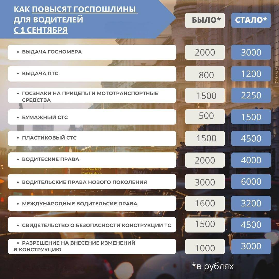 Например, за госномер водителям теперь придется заплатить 3000 вместо 2000, а за международные водительские права — 3200 вместо 1600.